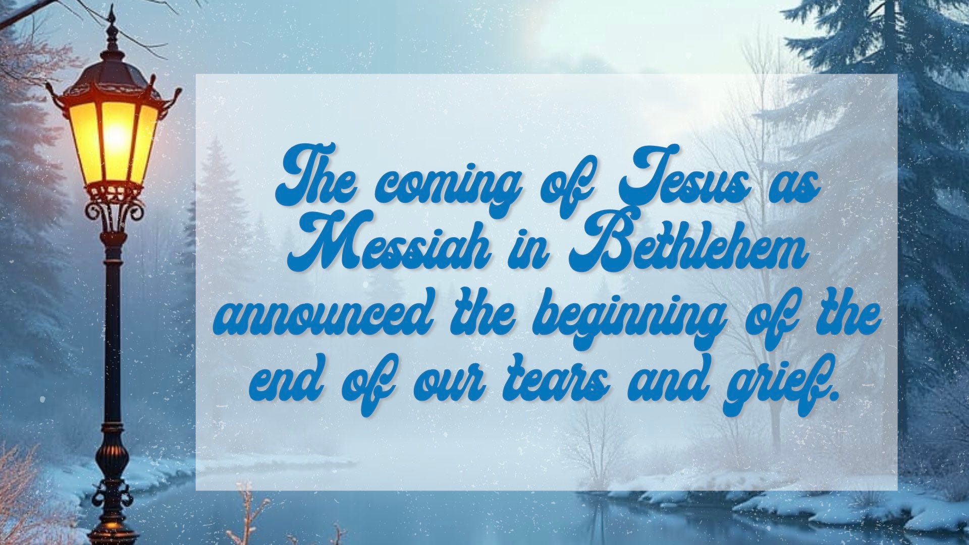 Christmas announced the beginning of the end of tears. When Jesus finally establishes His kingdom and brings us to heaven...