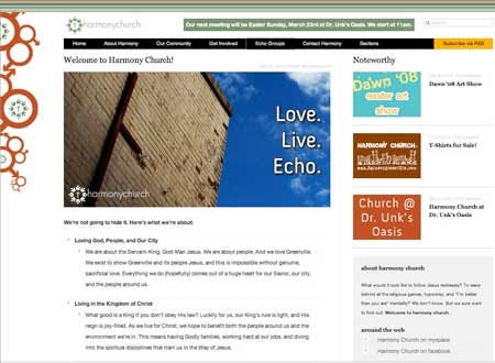 Harmony Church in Greenville, North Carolina has a clean, simple and nicely-designed church website. As a recent church start (within the last three years), it lists the following as their core value…
