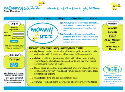 Mommybuzz.com is here. I don't know much about it, but it looks like a nice way to network with other moms out there for tips, ideas, and encouragement.