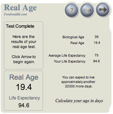 Ahahahahahahaha. I just took the Life Expectancy test, and it says that I'm not 39 years old! Alriiiiight! My "Real Age" is 19! So, I'm packing for a second senior trip and am considering some additi…