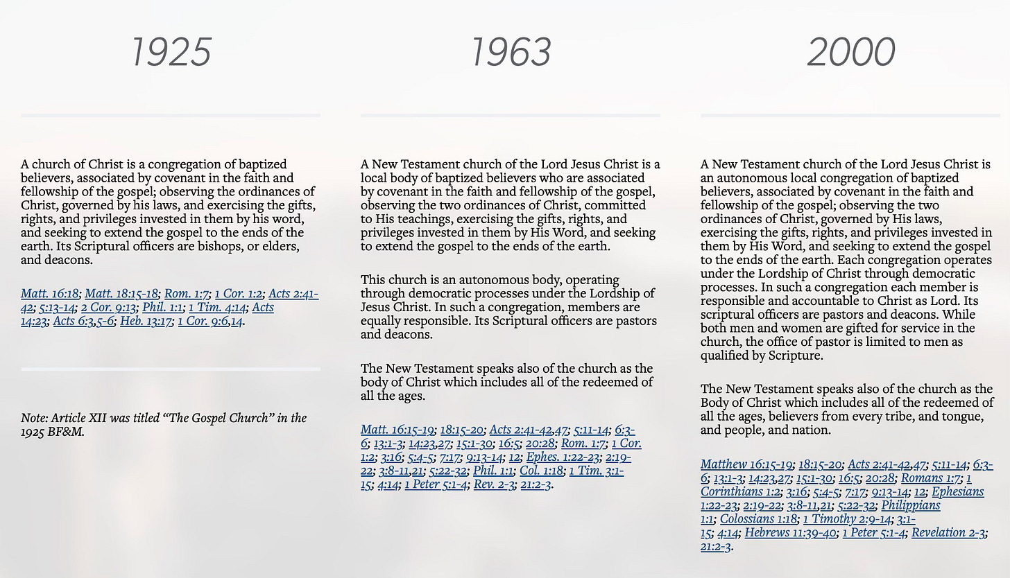 Here’s why I’m not distraught: while the Law Amendment failed to enshrine the biblical teaching about men only as pastors/elders in the Constitution, that expectation is already explicitly part of the Baptist Faith & Message 2000, which states: