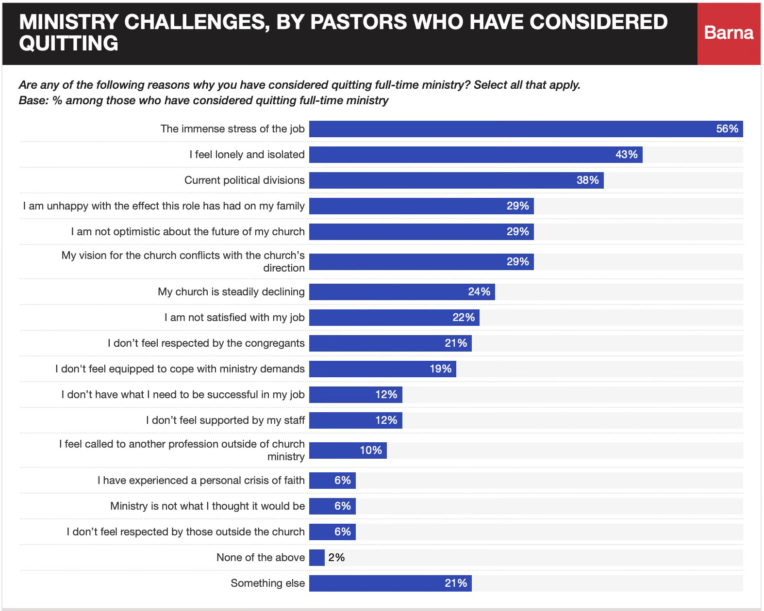 Pastors Share Top Reasons They’ve Considered Quitting Ministry in the Past Year (Barna Research Group, April 27, 2022)